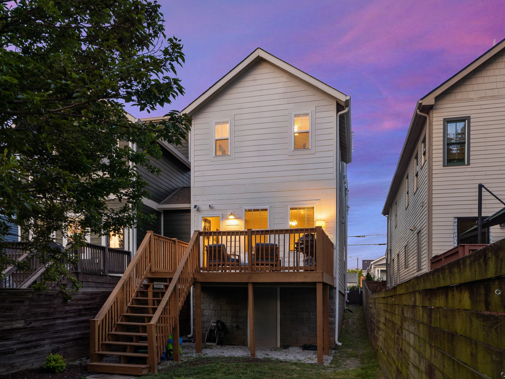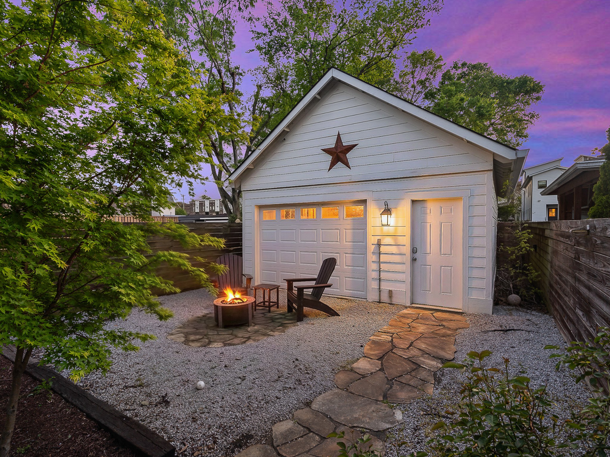 2-car enclosed garage with double garage doors for both alley access and inside property access can be used for a recording studio. The home also includes a beautifully landscaped frontyard (rose bushes, magnolia tree) and fenced in backyard. Gas line available on rooftop for a grill. Extra storage space under home. Ideally located just minutes from the Neuhoff Development, Oracle campus, Capital View, Nashville Yards, and First Horizon Park, with downtown only 10 minutes away and quick access to the highway.